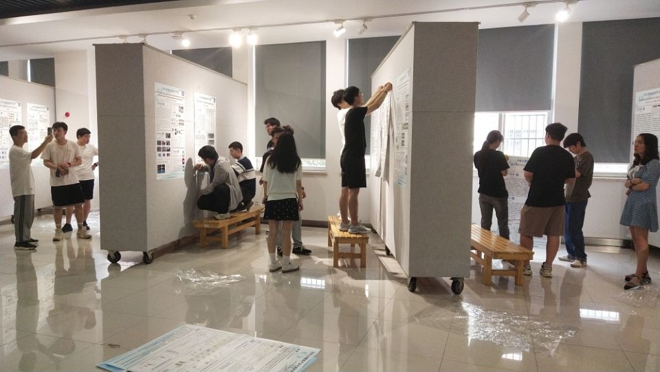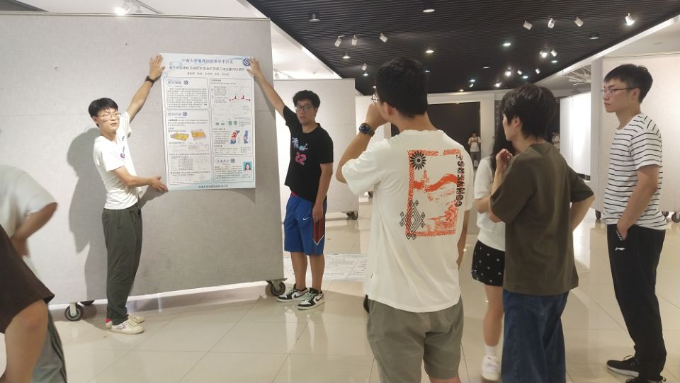 6月30日上午活动准备阶段,党员同志们齐心协力,为此次学术沙龙布置场地,精心打印粘贴学术海报,协调来自地理信息系博士、硕士研究生、本科生的55项优秀学术研究成果,将涉及深度学习与遥感、地球化学异常、类脑智能与遥感、杨赤忠滤波与推估、城市空间结构挖掘、人类移动模式挖掘、三维建模、国土空间与自然资源、知识图谱与地质灾害等多个交叉融合研究方向的不同研究内容海报进行合理的排版布局,以期实现多元交叉展示的效果,使得参与者能够更轻松地参与到各个环节中去。