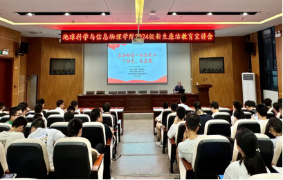 为进一步建设教育强国,强化学生廉洁意识,引导同学“扣好人生的第一粒扣子”,10月9日晚19:00 在地球科学楼127报告厅举行了以“在扣好第一粒扣子上下功夫、见实效”为主题的2024级新生廉洁教育宣讲。本次宣讲由院党委副书记刘浩主讲,2024级全体新生参与。