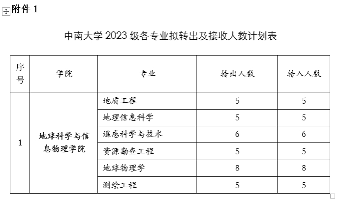 2023级各专业拟转出、接收优秀本科生人数计划表》(附件1)。
