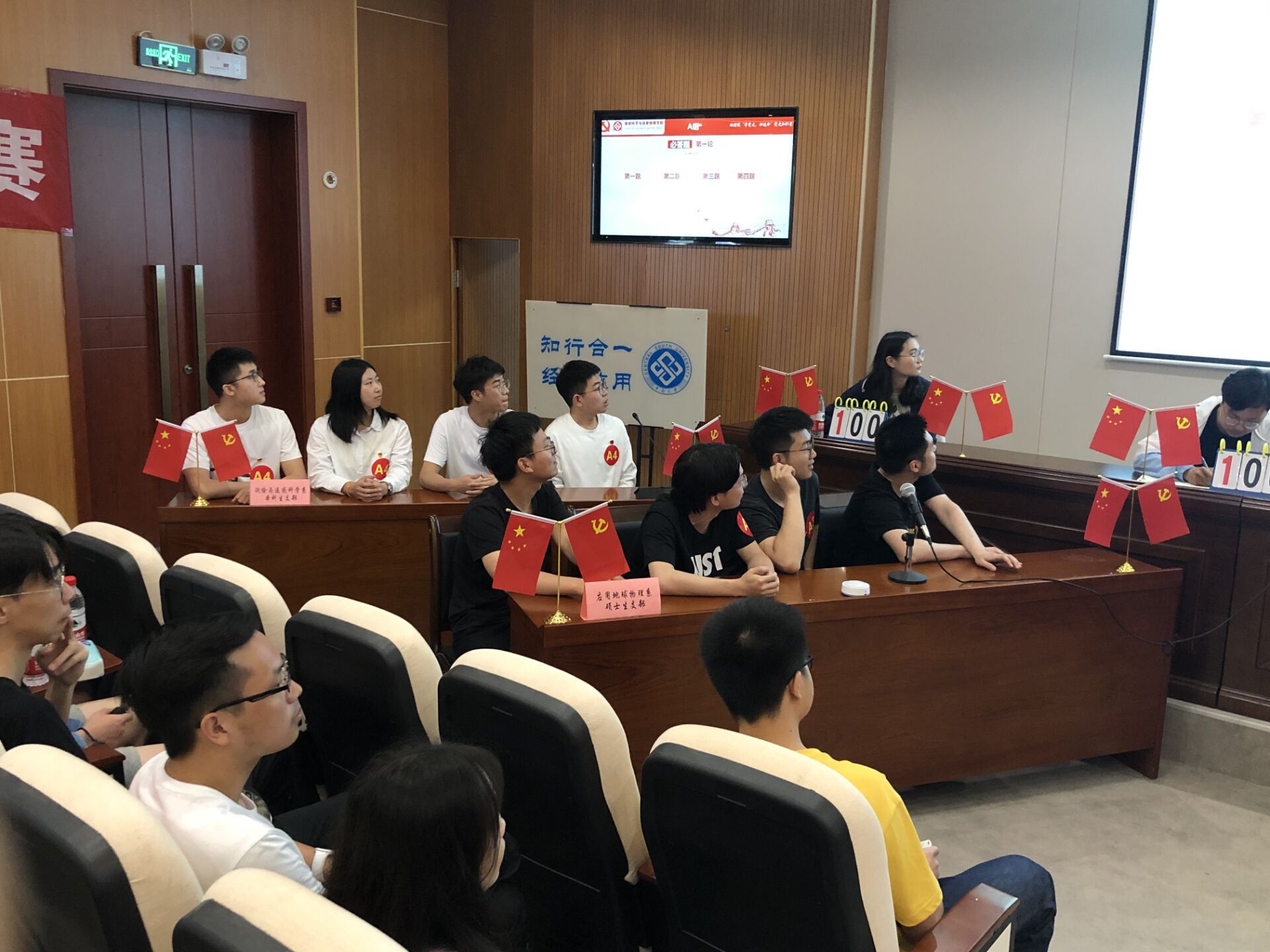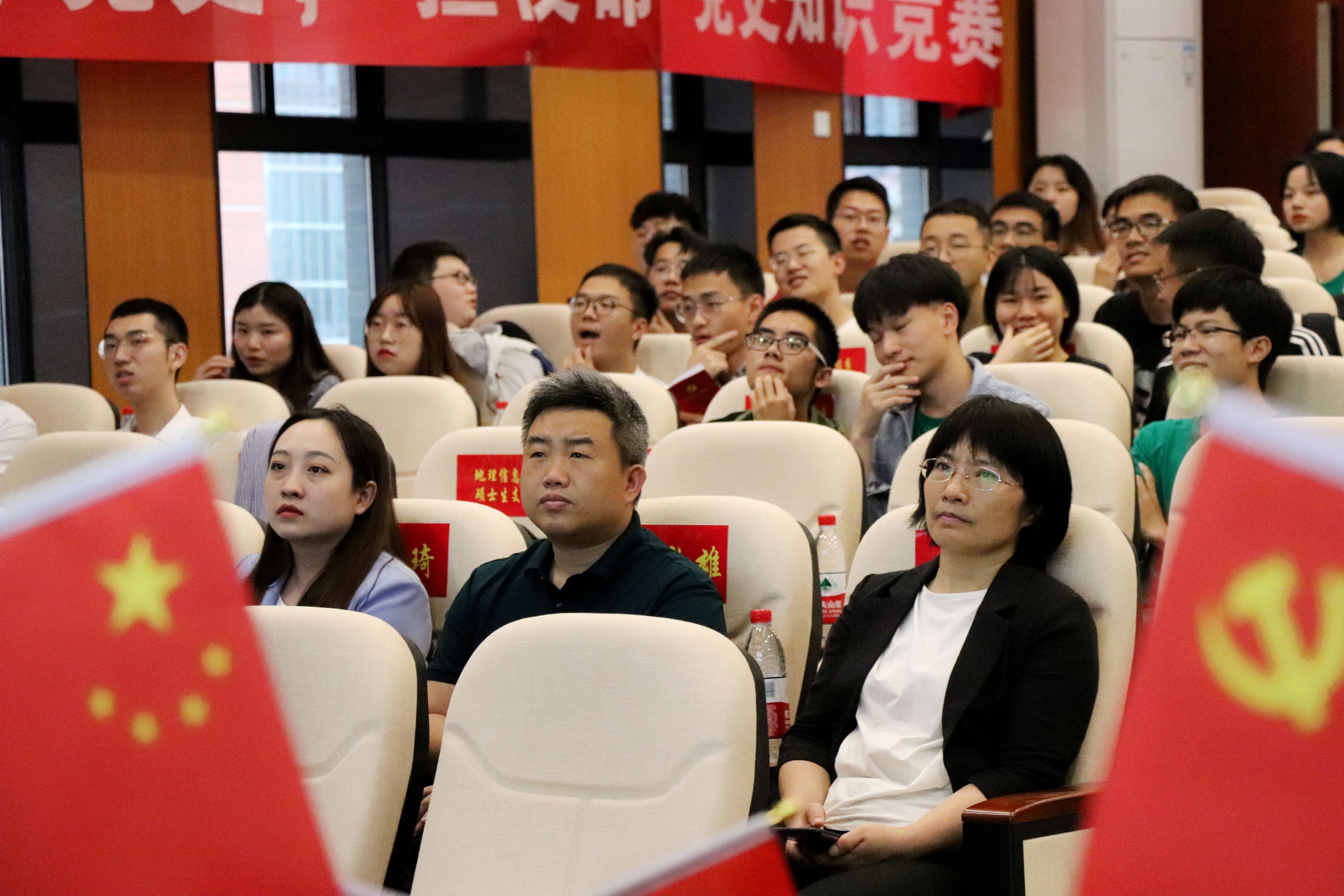 地信楼一楼报告厅进行比赛,地信院党委副书记李建军、院党委专职组织员彭光雄、院团委书记刘琦、19级辅导员彭璐、20级辅导员杨通田出席本次比赛。