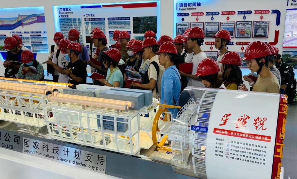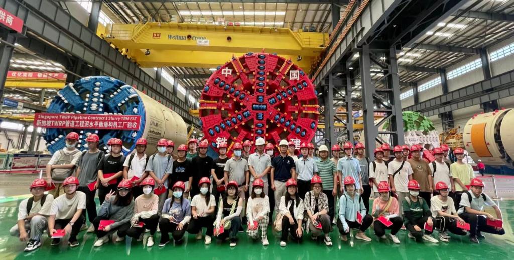 地质工程专业认识与设备实习是暑期本科生重要的实践学习环节之一。实习指导团队充分挖掘思政元素,将“家国情怀”和“艰苦奋斗”融入到实践教学中。7月上旬,在全球最大的地下工程装备制造基地——铁建重工长沙第二产业园区,师生共同领略了高端地下工程装备的风采。从创新研发、制造生产,再到新时期铁道兵的精神和奋斗,学生们纷纷为之震撼。在湘雅路过江通道施工现场,学生们冒着近40度高温近距离接触刀盘直径达到15.01米的“星盛号”盾构机。面对断层破碎带和浅覆土的双重地质难题,建设者们发扬艰苦奋斗精神,将“大国重器”成功运用在地下工程的非开挖建设中,学生们强大的使命感也油然而生。