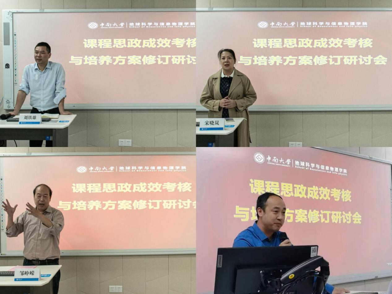 接下来资源勘查工程、地球物理学、地质工程、测绘工程以及遥感科学与技术、地理信息科学专业的教学主任和教师代表就2023版培养方案的修订工作进展情况进行了汇报。