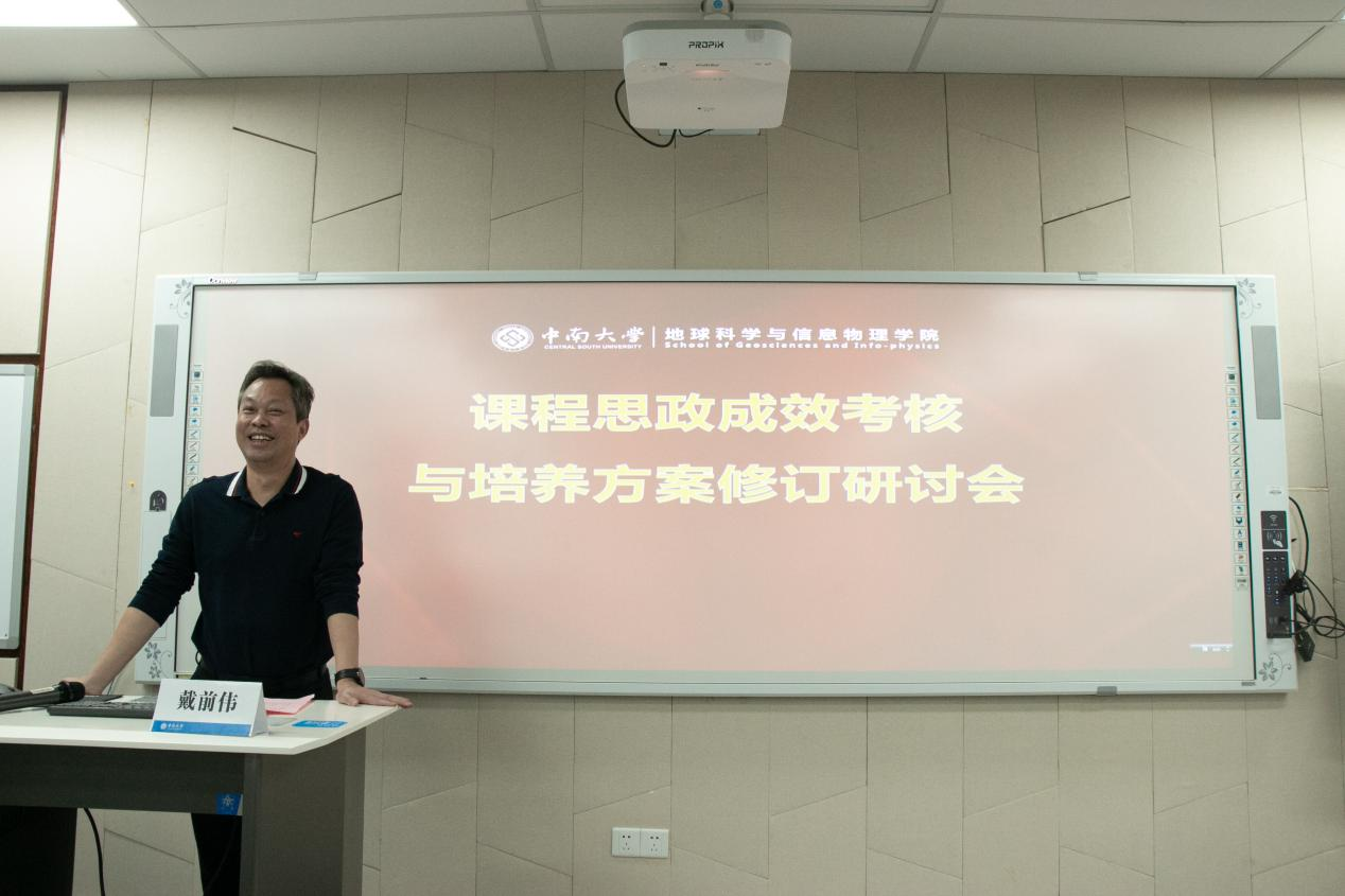 会议最后,戴前伟院长进行了总结发言,感谢学校本科生院和教学督导对地信院课程思政高质量建设的指导和关心,要求各专业高度重视 2023 版培养方案修订工作。他指出,要把培养方案和课程大纲的修订紧密结合起来,将知识模块化处理,注重体系化培养学生,老师们要根据《高等学校课程思政建设指导纲要》的内容,把握好思政元素,让课程与时俱进。戴院长希望通过本次契机,将思政教育落实,把地信院本科教学特色培养提升到一个新的层次。