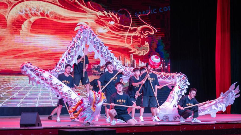 第二篇章“砥砺·奋楫笃行”紧随其后。《欢迎来到爱乐之城》的浪漫优雅打动人心;《你要跳舞吗》用蹁跹之态展现青春美好;《叙时芳》用沉淀千年的汉服舞蹈秀展现传统文化魅力;《干杯》则重忆了大学生活的点点滴滴。结束后,主持人拉开了互动抽奖环节,通过抽取号码的方式抽到了25位幸运观众送上精美礼品。