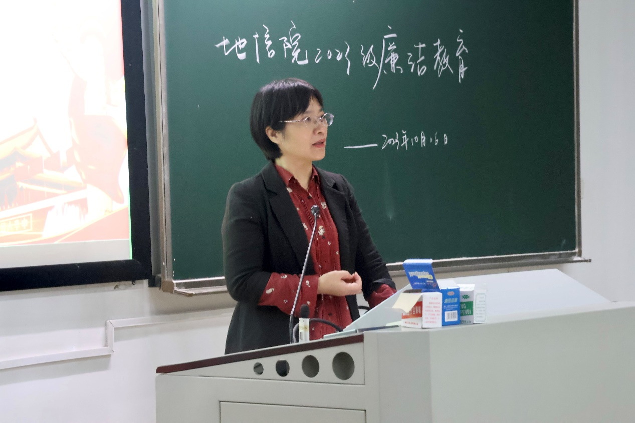 地信院2023级新生廉洁教育讲座于10月16日晚上19点30分在新校区D座204、205教室开展,由学院党委副书记李建军老师主讲,23级辅导员赵乐老师主持,地信院全体本科新生参会。
