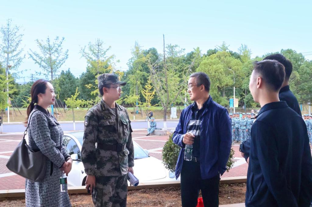 2023级本科新生军训自10月7日起正式开始,期间,地信院党委书记邵拥军、学院党委副书记李建军前往军训训练场地,代表学院领导看望慰问参训干部、承训教官和全体参训新生,学院团委书记刘琦陪同看望。