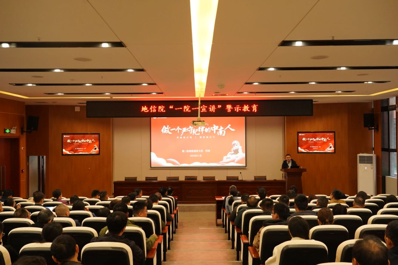 邀请了学校纪委第三监察室主任肖睿作题为“做一个严守纪律的中南人”的纪法宣讲和警示教育。学院领导及教职工代表一百余人参加宣讲会,会议由学院党委书记邵拥军主持。