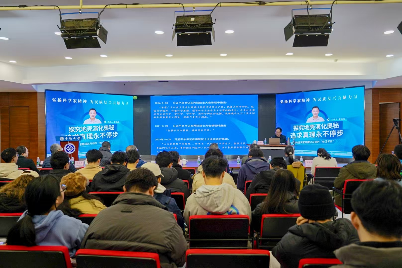 此次讲座,李浩鸣教授结合多年在陈国达先生指导下开展地学研究、科技管理的亲身经历和多次采访报道陈老的感悟与体会,用一个个真实感人的故事,为大家展现了老一辈科学家那令人动容的爱国创新、无私奉献精神,坚持真理、勇于攀登的坚定信念,以及拼搏奋斗、悉心育人的高尚品德。