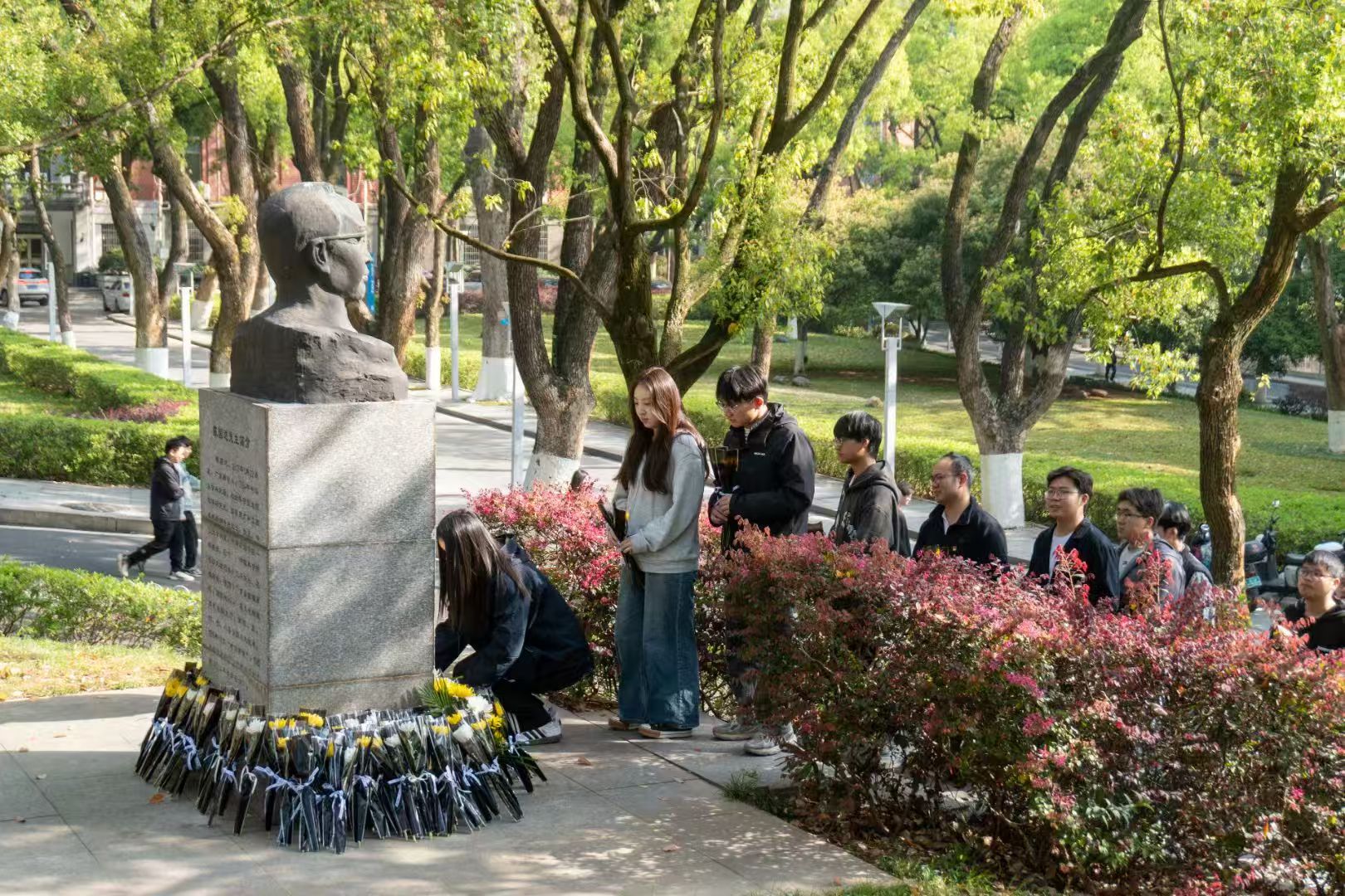 于岳麓山校区地学楼前举行“青春纪念日·清明”缅怀先辈祭扫活动。原地信院院长戴塔根教授、学院党委副书记刘浩、团委书记刘琦及师生代表近80人参与。此次活动由寇浚哲老师主持。