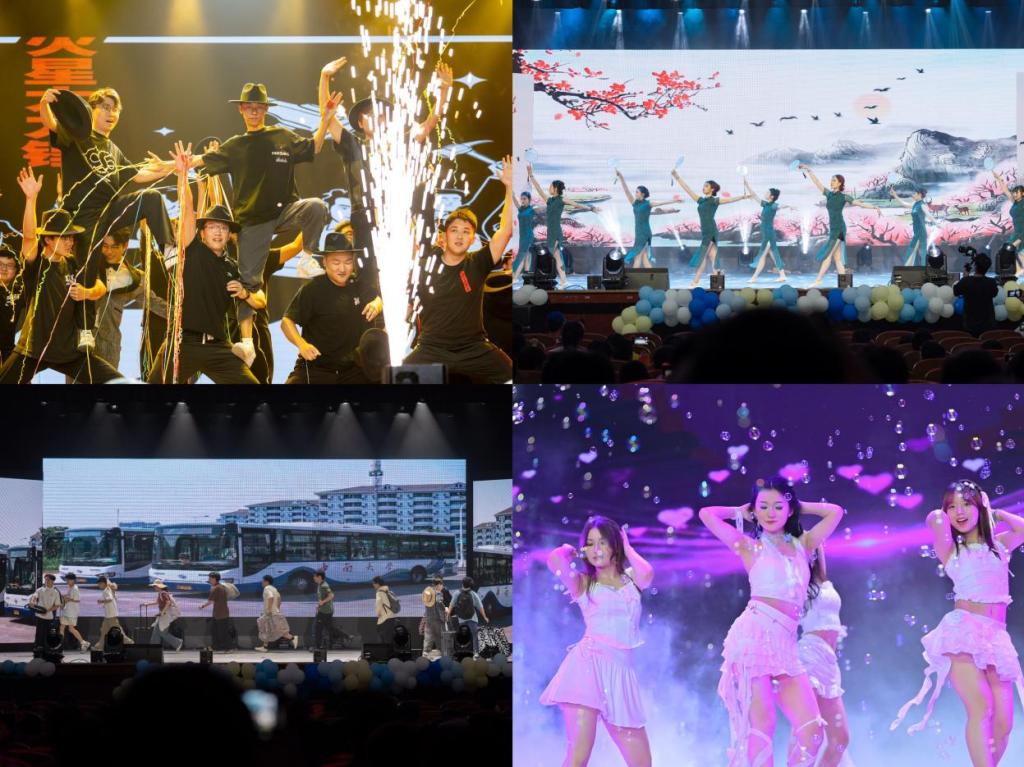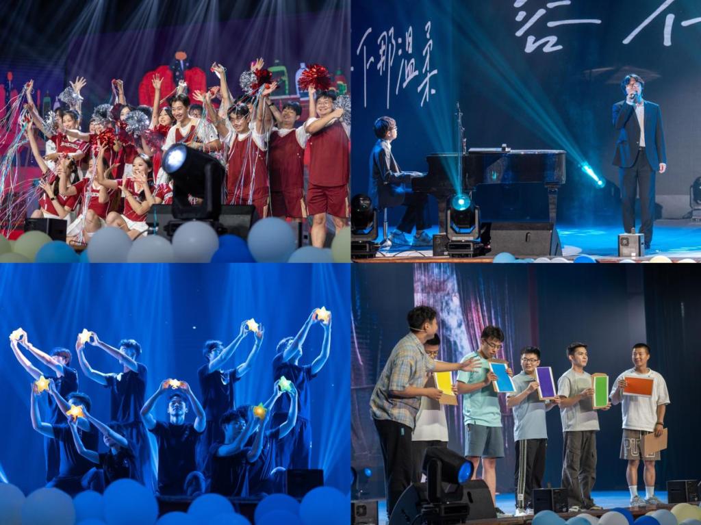 第三篇章乘风·山海新章”饱含祝福与深情。《乐游双经》以民乐与武术的铿锵协奏,奏响了青春热血与天地柔情;《声生不息》的配音剧场将胶片刻进时光年轮,一句句原声复刻让散落的大学碎片在此刻共鸣;《朋友,干杯》合唱声里,旋律串起同窗点滴,歌声敬过往情谊,愿青春永不散场!