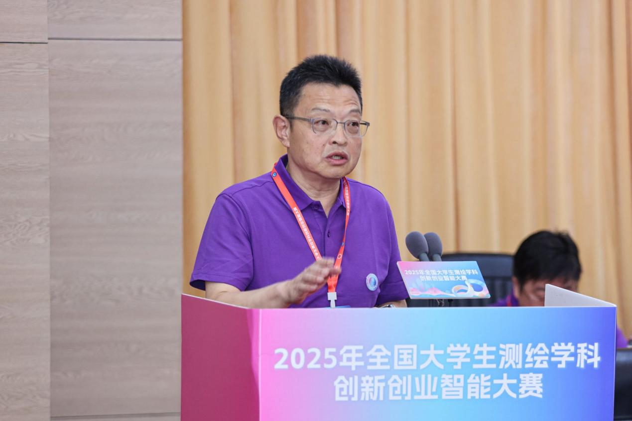 图1. 李建成校长(教育部高等学校测绘类专业教学指导委员会主任委员、中国测绘学会教育工作委员会主任委员、中国工程院院士)开幕式致辞