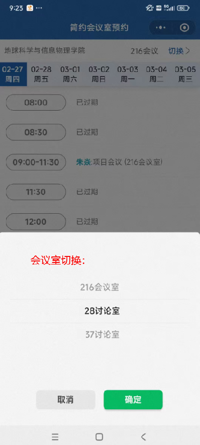4.点击“切换”,可以选择不同的会议室;