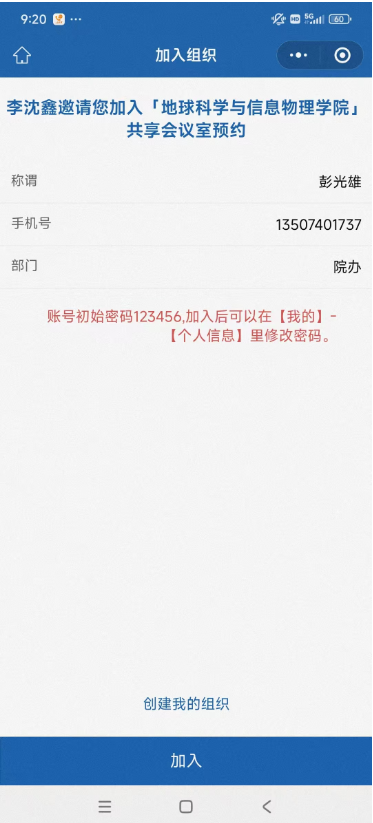 2.填写个人信息,加入组织;