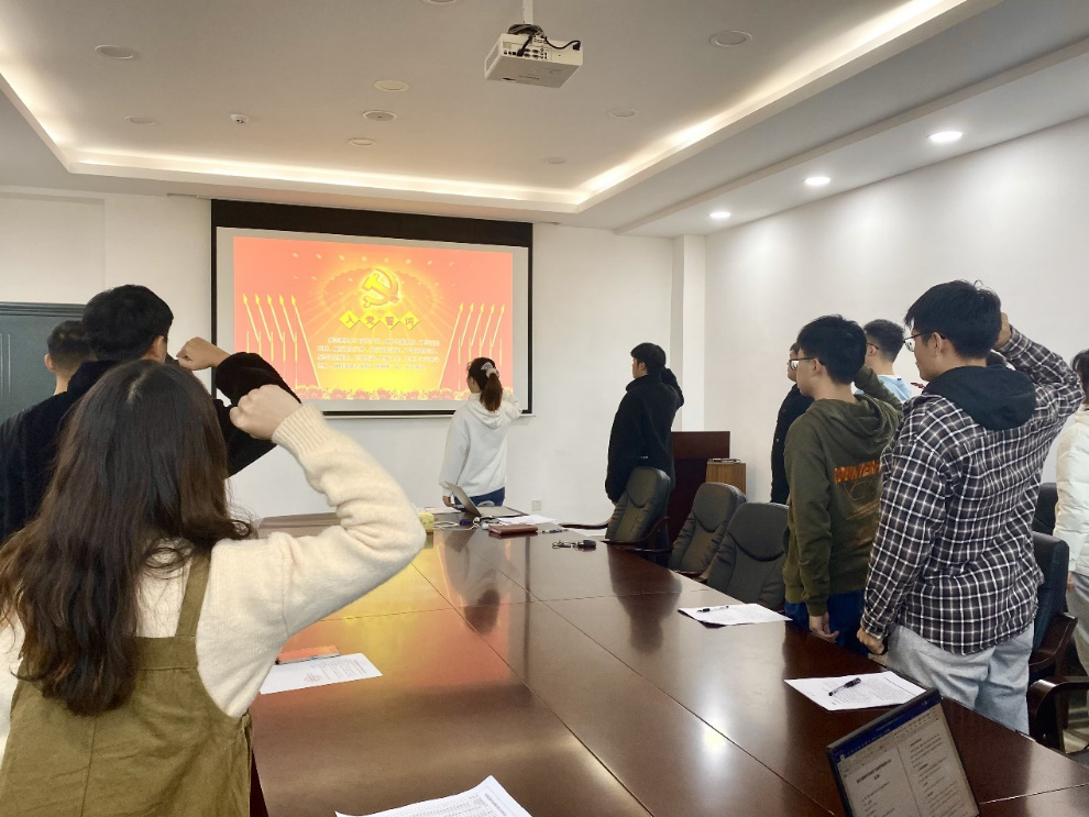 接着,何可沁同志带领全体同志进行了庄严的入党宣誓,并对接收的新同志表示了祝贺与欢迎,也希望各位新加入同志能够牢记这个特殊的日期,在今后的学习和工作中尽职尽责,向身边的优秀党员同志学习,以党员的标准严格要求自己。