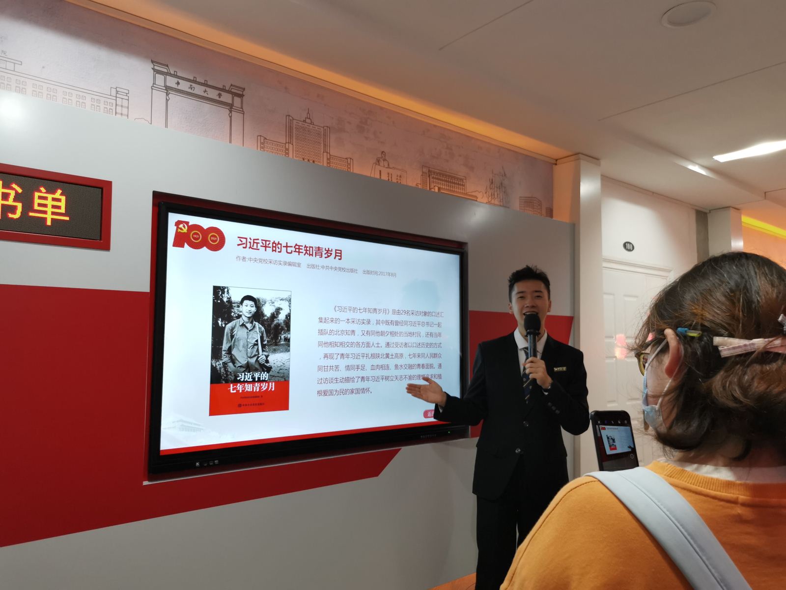 进入推荐书单环节,讲解员重点向同志们推荐了《习近平的七年知青岁月》。学习这本书,可以从小故事中读出大道理,从口述中洞察大时代,从真情怀中感受大担当,从奋斗史中汲取大智慧。习近平总书记四十多年前的梁家河峥嵘青春,具有无比强大的感染力感召力,跨越历史时空共振共鸣,震撼心灵洗礼精神,像磁铁般深深吸引着新时代的大学生,照亮着莘莘学子把激昂青春梦融入伟大中国梦的新时代征程。