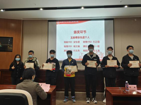 盘析过去,继往开来。紧接着,获奖代表们作经验分享,测绘1903班、地勘1801班班级代表分别就建设班风学风的方法展开分享;升华12栋305寝室长对于寝室学风建设的细节娓娓道来;先进个人姜文涛对互助帮扶的意义作真挚而有力的发言;担任班导师助理的任嘉龙对学风建设的体悟也分享了个人的见解,台下掌声连连。