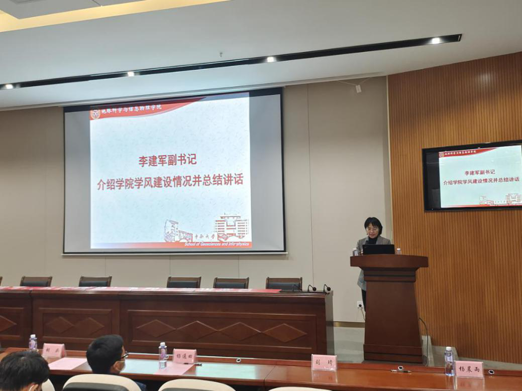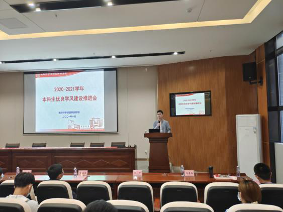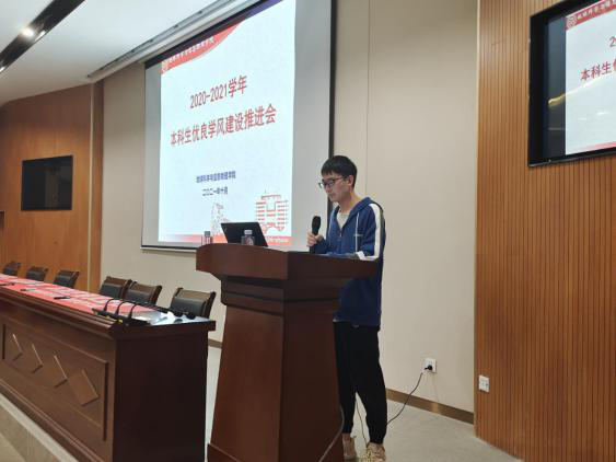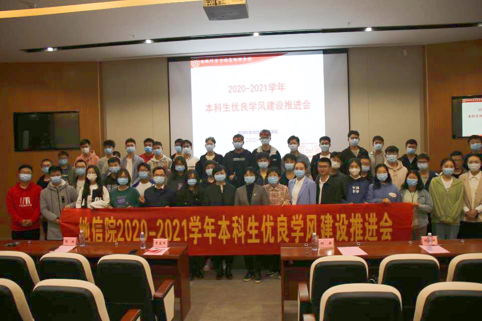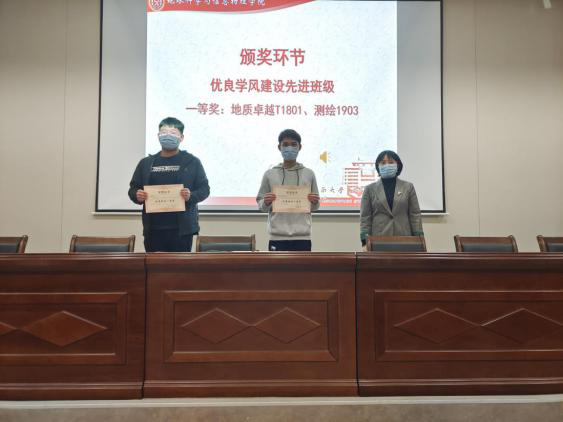2020-2021学年本科生优良学风建设推进会于新校地科楼127报告厅顺利举行。地信院党委副书记李建军,学工办副主任、19级辅导员胡幽,学风专干、研究生辅导员田可,团委书记、21级辅导员刘琦,19级辅导员彭璐,20级辅导员杨通田出席会议,各年级获奖班级、寝室及个人代表参加会议。会议采用线上线下双会场模式,由20级辅导员杨晨雨主持。