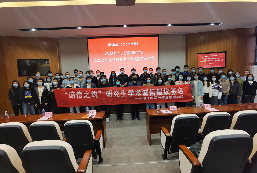 会后,学院师生纷纷在写有“谛信之约”研究生学术诚信倡议签名的横幅上郑重签上了自己的名字。本次学术诚信教育活动,使学院研究生对科学道德与诚信的认识更为深刻,同学们纷纷表示定会潜心科研,坚守底线,促进健康学术交流,弘扬优良学术风气,争做模范地信人。