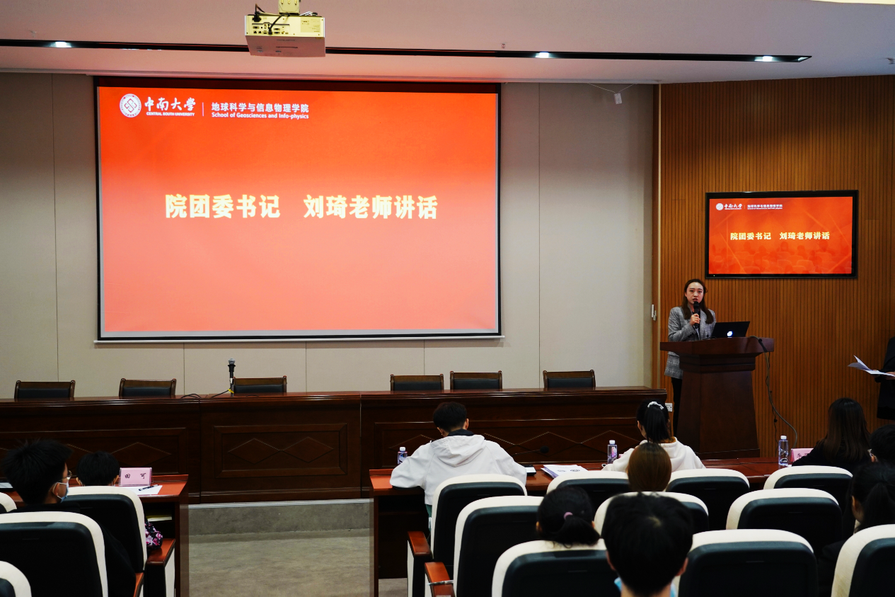 会议第一项,地信院分团委书记刘琦老师致辞。刘琦老师从2021年建党百年背景下“永远跟党走,奋进新时代”的实践主题切入,详细地给同学们讲述了大学生志愿者“三下乡”暑期社会实践的时代背景,并从对在校大学生及对新农村建设两方面分析其重要意义,呼吁到场的各位同学认真学习先进经验,规避不足之处,争取在2022年的大学生志愿者暑期“三下乡”活动中有更加亮眼的表现。刘老师强调,广大青年学子应把蓬勃的青春热情融入到火热的实践中去,与祖国同频共振,在实践中为民办事、在实践中学以致用,才能把青春之歌谱写得更加雄浑激越。