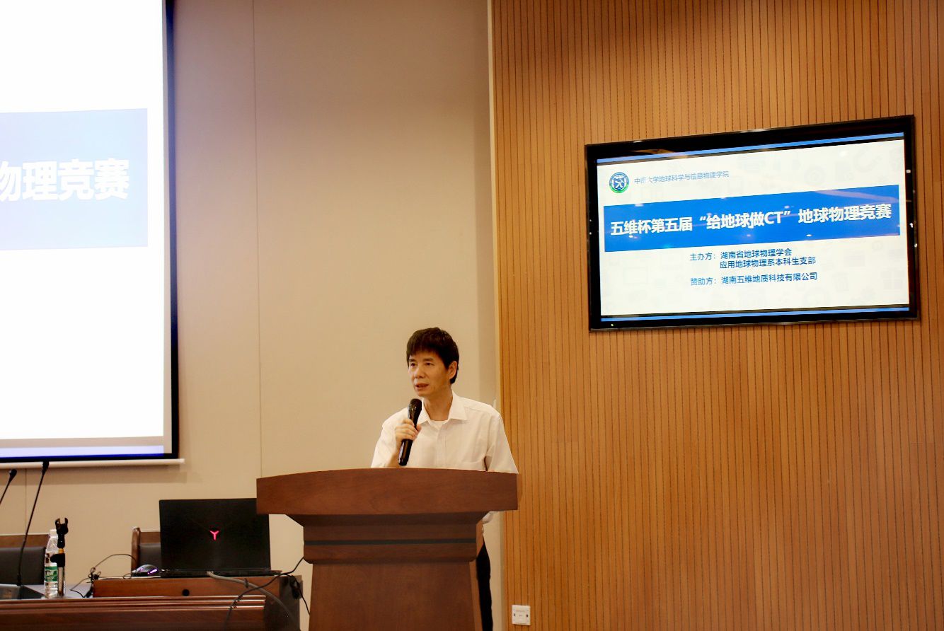 5月29日早上8点,五维杯第五届“给地球做CT“地球物理竞赛在地科楼报告厅正式开始,地信院党委副书记李建军、中国地球物理学会常务理事及地信院教授柳建新、湖南五维地质科技有限公司周胜经理、周竹生教授、强建科教授、李帝铨教授、谢维副教授、王鹤副教授、应用地球物理系本科生支部书记胡幽、龚安栋老师、20级辅导员杨通田出席本次比赛,应用地球物理系本科生支部全体成员、地物2019级、2020级全体学生到场。