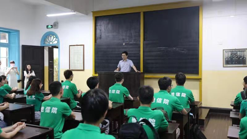 在抵达第一师范纪念馆后,在讲解员的引导下,20级遥感全体学生和地信院本科生党支部与湖南第一师范学院教科院学生党支部一同参观学习。全体成员参观了毛主席在第一师范就读时原貌修复的大礼堂、第八教室与寝室、陈列展厅、主席锻炼故亭等,全面了解了毛主席在第一师范的学习和生活经历,更加深了我们对老一辈无产阶级的革命家的丰功伟绩敬佩,被先辈们坚定的信念和团结奋斗的精神感动至深。