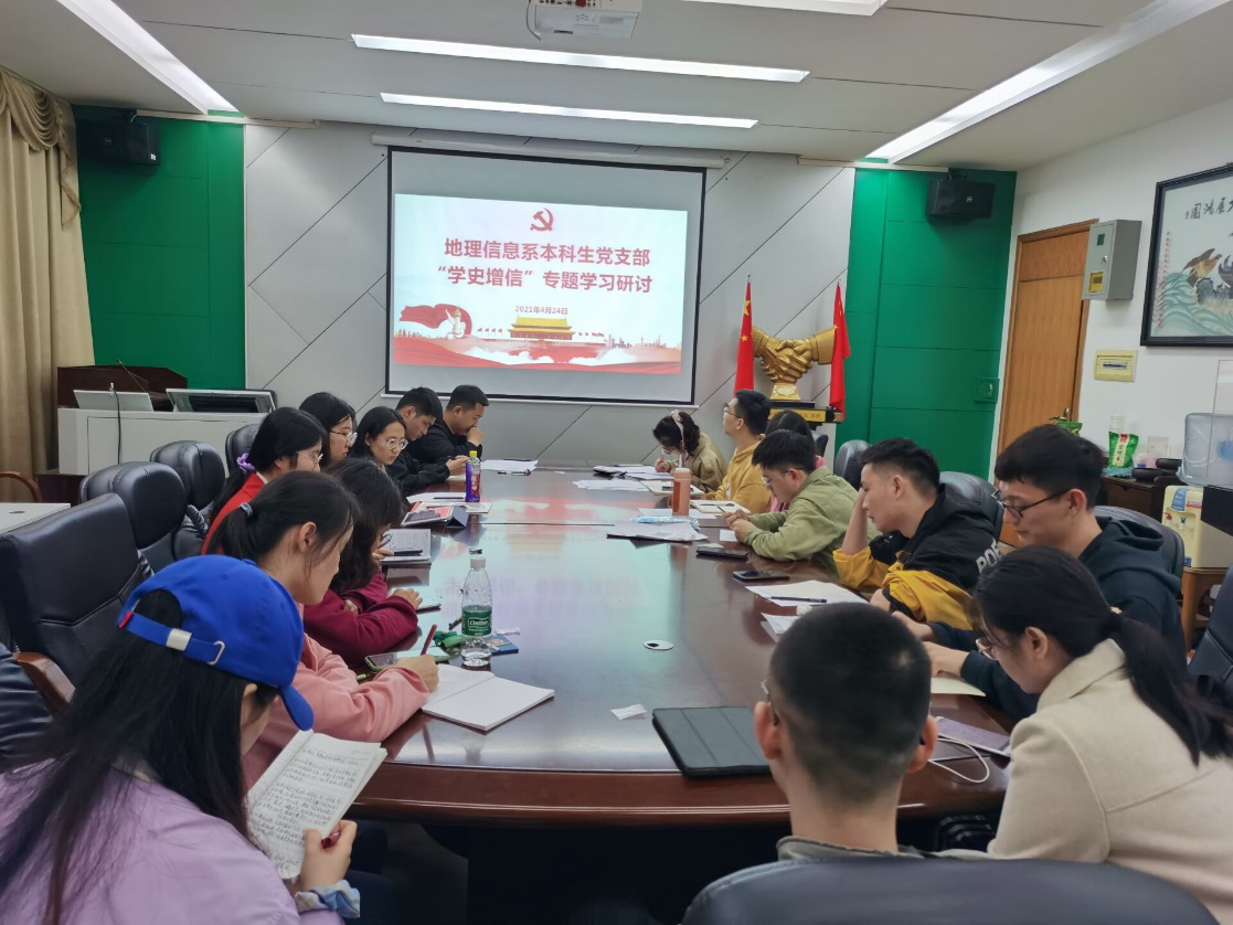 4月24日下午19:00,地理信息系本科生支部于校本部地学楼336开展微党课比赛暨党史学习专题研讨会。本次会议由强俊同志主持,支部全体同志出席本次会议。