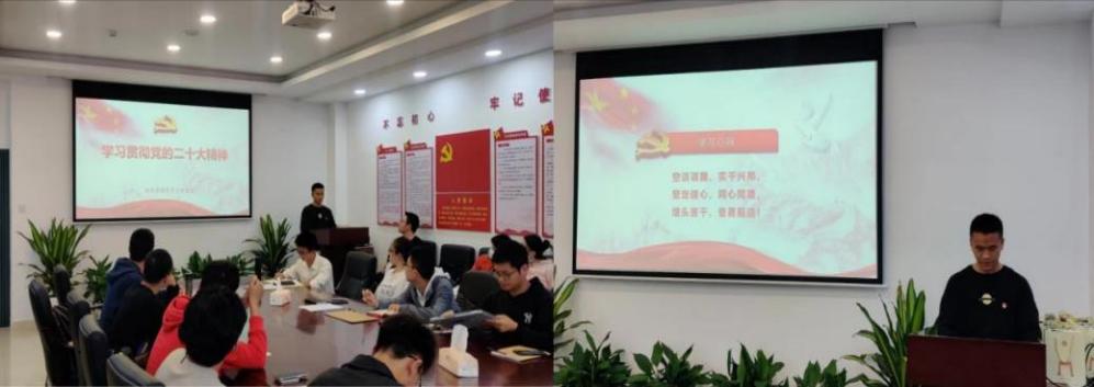 会议第一项,学习贯彻党的二十大精神。本月由第一党小组分享学习心得,第一党小组代表尚远鹏同志表示:聆听党的二十大报告受到了极大的鼓舞和振奋,并结合报告内容与实际情况提出作为大学生应当牢记“空谈误国、实干兴邦,坚定信心、同心同德,埋头苦干、奋勇前进”以及思考如何为实现中华民族的伟大复兴贡献自己的力量。