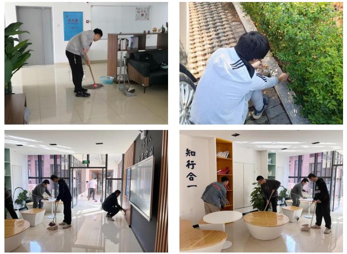 在班导师杨通田老师的带领下,57名学员被划分成了五个不同的组,对不同的区域进行了打扫,主要的工作任务是清扫楼道的垃圾、捡拾杂物,打扫文化空间的地面,擦洗书柜、桌椅等。