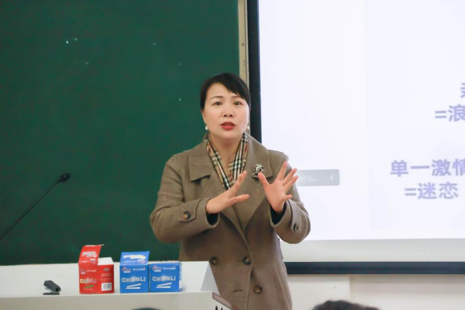 讲座开始后,姜美霞老师以三种恋爱类型的不同表现作为切入点,为同学们指明了正确的恋爱方向,告诉同学们健康的爱情需要激情、亲密和承诺三要素相平衡。同时,姜美霞老师帮助在场的同学们测试了恋爱人格,并就不同恋爱人格在恋爱中时常出现的问题,通过幽默风趣的讲解为大家提供了解决方法。姜老师指出,真正合适的爱情应该是互相包容的,应该是给对方保留足够的私人空间的。此外,姜老师还向同学们普及了两性知识,让同学们能够正确看待两性关系,学会在恋爱中保护自己。最后,姜老师强调了如何预防艾滋病等疾病的相关知识。