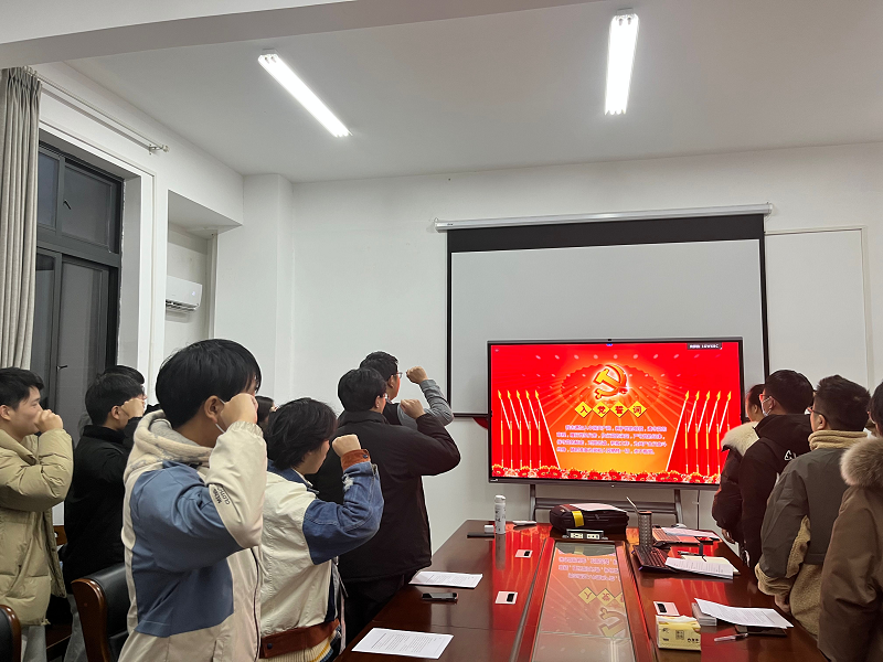 会议的第三项内容是支部书记何可沁老师带领全体同志进行庄严的入党宣誓。入党宣誓后,何可沁老师对新接收的11位同志表示了欢迎,同时也对各位党员提出殷切的希望,希望他们能继续在今后的生活中发扬优良作风,不忘初心,砥砺前行,时时刻刻以一名党员的标准严格要求自己。