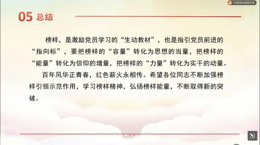 会议第三项,由齐国恒同志主持开展12月份的集体学习。学习内容为集体观看陈国达院士纪录片以及何继善院士的采访视频。