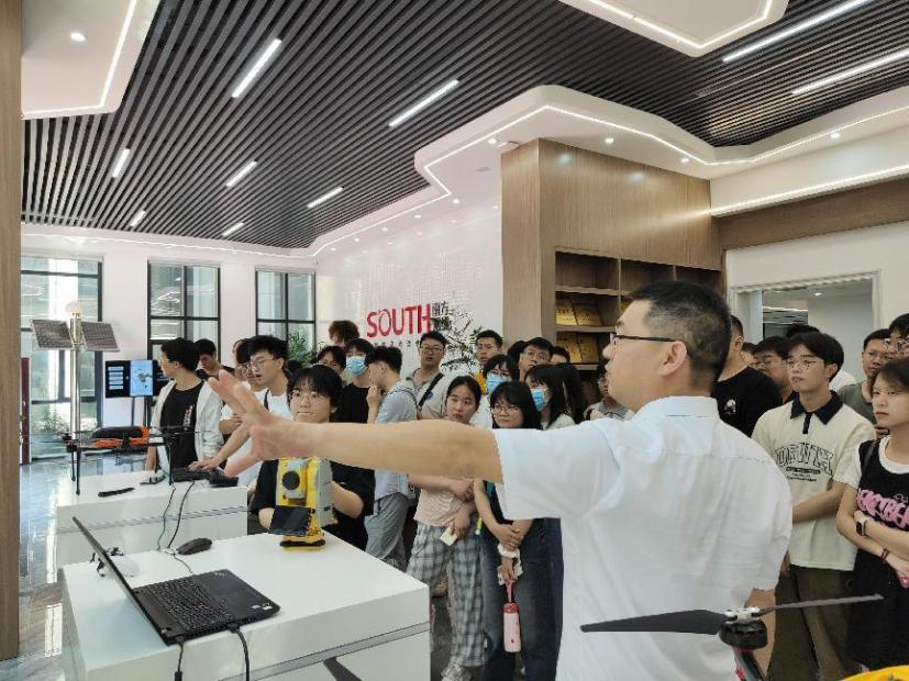 接着,同学们参观了由南方测绘集团开发的新型测绘装备,观摩了南方测绘集团员工的实际生产工作,对当下测绘技术的发展与生产流程有了较为全面的了解。随后所有参观人员来到四楼,听取公司领导向同学们介绍南方测绘集团,对南方测绘集团的公司构成、研究发展方向以及行业未来走向都有了较为全面的认识。