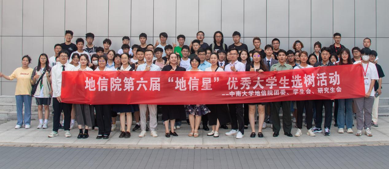 活动最后,各位领导老师、答辩选手、观众与工作人员合影留念。至此,地信院第六届“地信星”优秀大学生选树活动圆满落幕。此次活动充分展现了地信院优秀学子勇于挑战、一往无前、砥砺奋进的宝贵品质。荣誉属于过去,未来还需奋进。相信在每一颗“地信星”榜样力量的引领下,各位地信学子们将在今后的日子里继续踔厉奋发,笃行不殆,成为有理想,敢担当,能吃苦,肯奋斗的新时代青年人!
