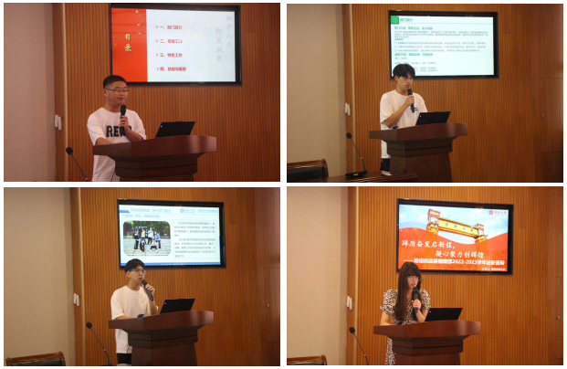 在述职汇报中,各部门围绕工作重点,详细介绍了立足本部门工作采取的具体措施、取得的工作成效和存在的问题,并就今后的部门发展方向做了规划。各部门代表纷纷表示在过去一学年的学生组织工作经历十分宝贵,他们在服务同学的同时不断成长,自身综合素质获得了质的提升。