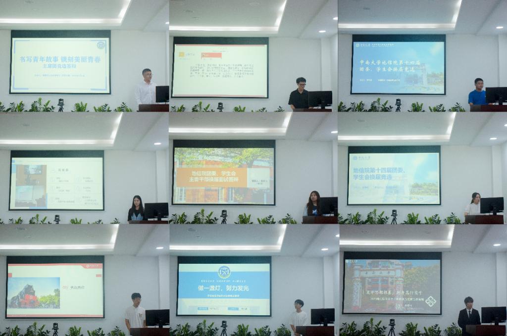 2023年团委、学生会主要干部换届竞选于地球科学楼214会议室举行。学院党委副书记李建军,院研究生辅导员田可,院团委书记刘琦,院辅导员刘凯、杨通田,以及学院第十三届学生会主席团成员出席活动并担任评委,活动由寇浚哲同学主持,9位同学参与此次竞选。