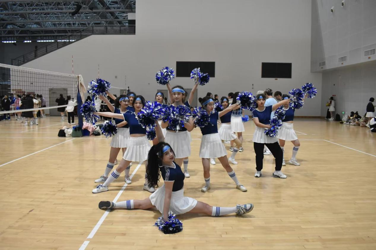 比赛分为健美操和花球啦啦操两部分。首先进行的是健美操比赛,场上的9名队员都展现了自己最佳的竞技状态,努力将动作做到最好;随后经过短暂的调整,花球啦啦操的比赛拉开帷幕,地信院共有11名队员参加此项比赛,她们互相配合,不时变换着队形;新颖独特的动作还体现着她们的独到的创新精神,展现出强大的团队协作能力和充满朝气的青春活力,赢得了场边观众的阵阵喝彩和评委老师的一致肯定。