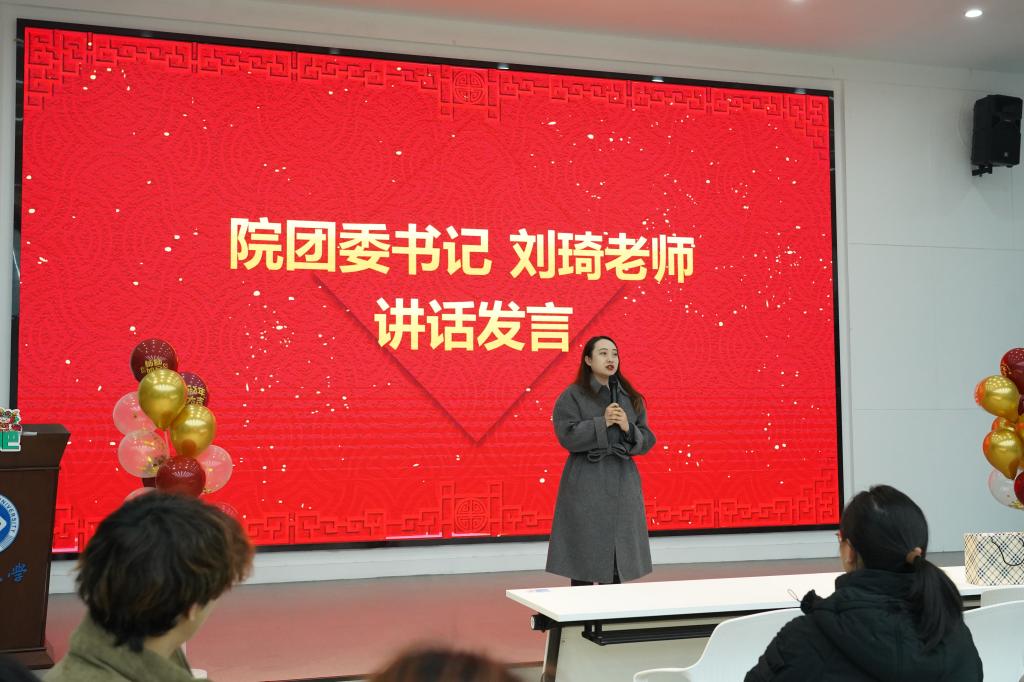 活动伊始,院团委书记刘琦老师向全体成员送去新年祝福,同时对团学会本学期所取得的成绩表示肯定。刘老师希望每位学生干部在新的一年里都能牢记服务宗旨,再接再厉,奋发向上,为推进学院建设发展贡献青春力量。