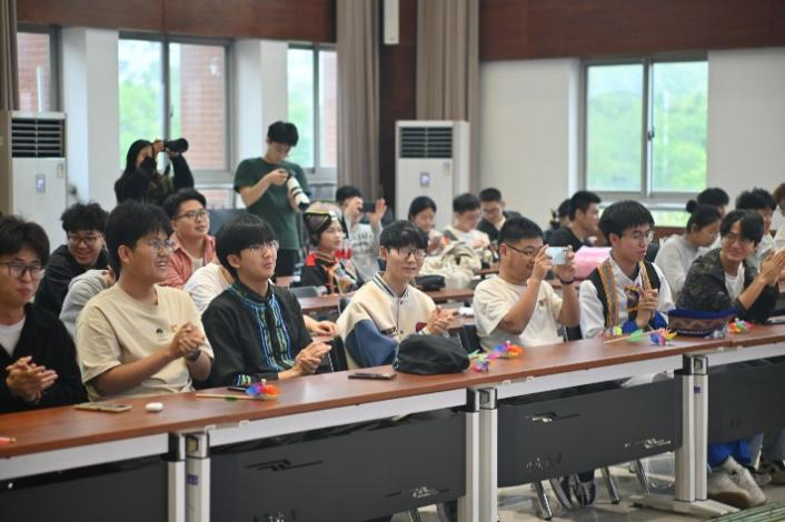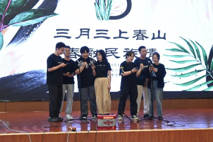 “唱山歌咧,这边唱来那边和……”一首首耳熟能详的山歌在会场回荡,壮族同学们与学校各族师生欢聚一堂,共同欣赏三月三春天的活力乐章,一同领略壮族浓厚的乡土风情。