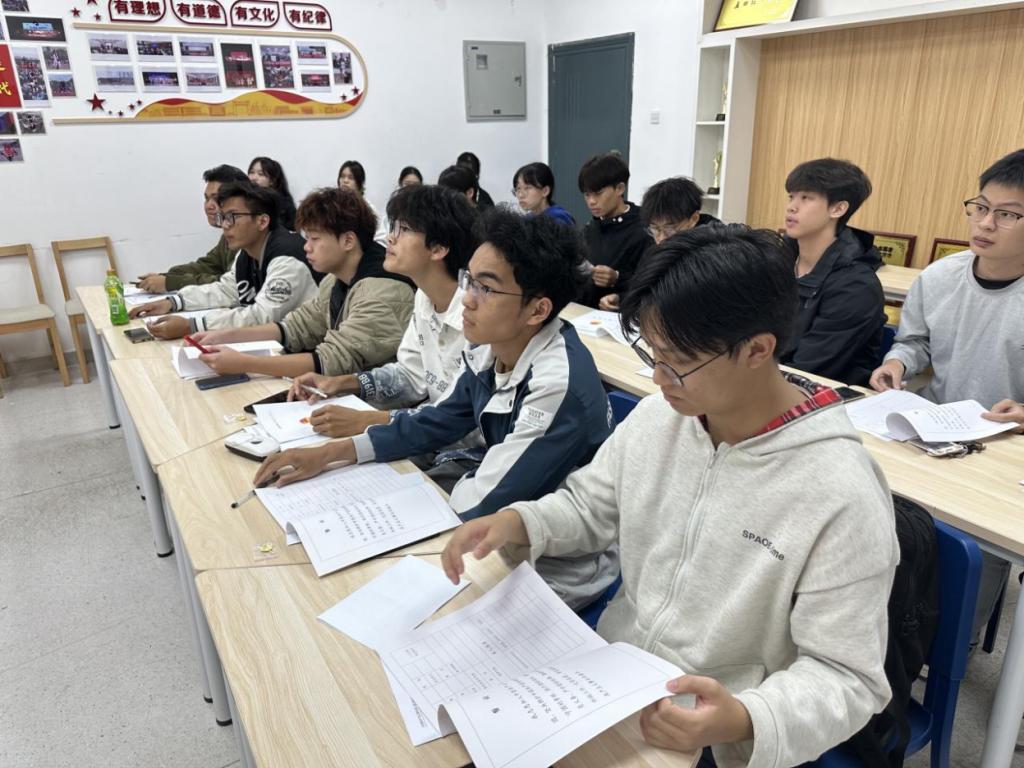 仪式伊始,全场高唱国歌。院团委组织部杨颜瑞同学宣布新团员名单、颁发团徽并带领新团员庄严宣誓。随后,步文峰同学代表全体新团员表示,在以后的学习和生活中将始终保持积极向上、锐意进取的态度。老团员代表王倩茹同学分享了在共青团的成长经历和宝贵经验,并对新团员提出真挚建议。两位同学发言结束后,院团委学生副书记黄思圻同学致辞,强调共青团员在新时代的使命与担当,鼓励新团员积极进取、严于律己,发挥模范作用。随后,院团委组织部丁若涵同学为大家进行入团知识培训。培训完毕,全体人员齐唱团歌,为本次入团仪式画上圆满句号。仪式结束后,由院团委组织部张景然同学为新团员们讲解入团志愿书的填写规范和注意事项,黄思圻同学及杨颜瑞同学为新团员们就入团志愿书填写问题进行了现场答疑。