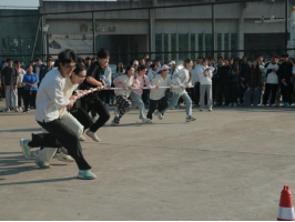 比赛的第一个项目是“力拔山河”,它不仅是力量的见证,也展现了良好的团结氛围。场上的同学齐心聚力拉紧一根绳,场下的同学呐喊助威声彻云霄。