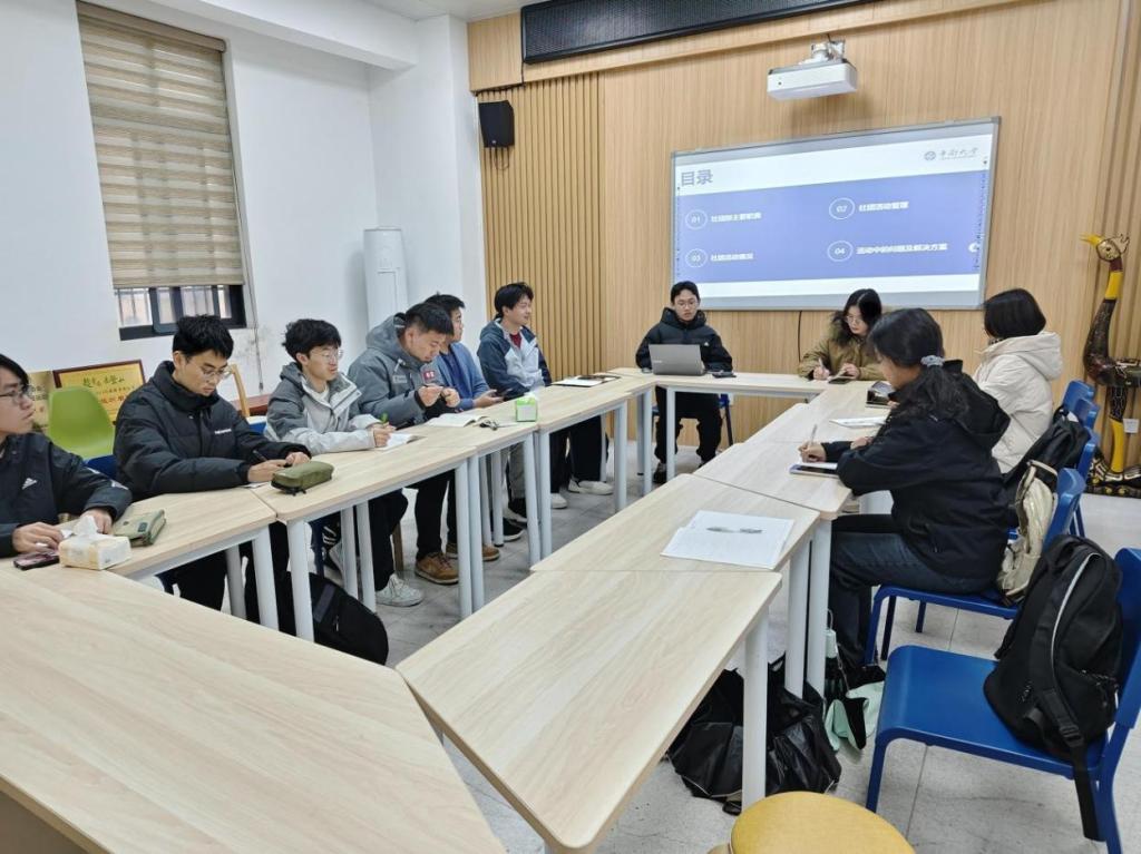 本次会议以“联动聚力,携手共融”为主题,旨在加强部门与社团间的合作与交流,促进社团的发展。会议伊始,参会人员进行了简短的自我介绍,为后续深入交流奠定良好基础。随后,邹博文同学从社团部的主要职责、活动管理规范、上学期社团活动总结、活动开展存在的问题及解决方案四个方面展开说明,明确社团活动开展的流程及时间节点,并着重强调了社团活动所需材料申请等有关注意事项。