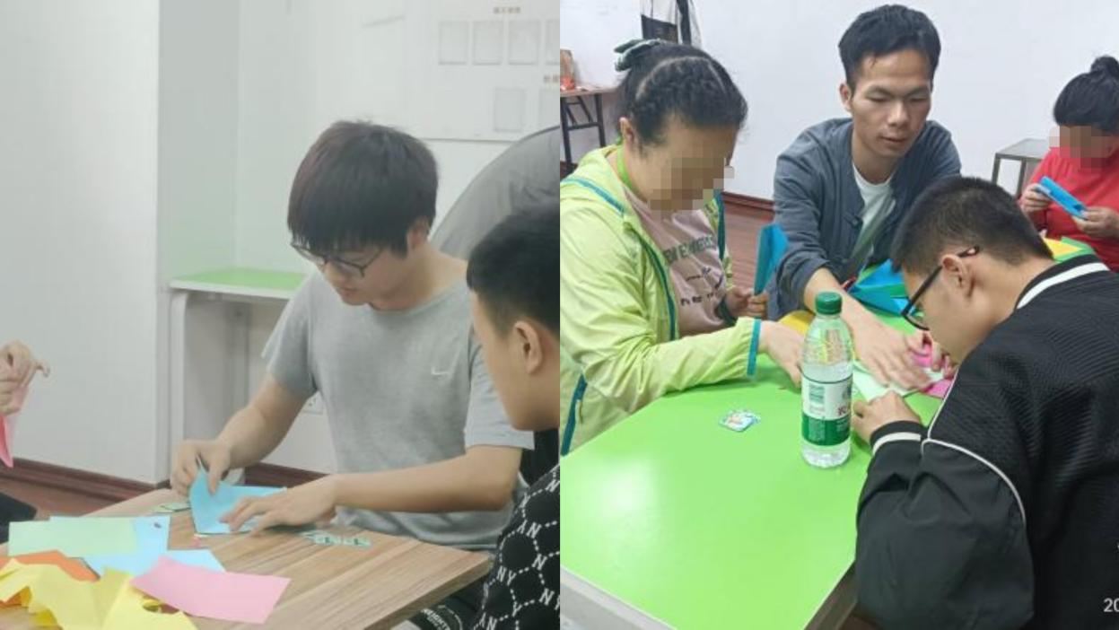 为帮助智力障碍学员提升专注力与社交能力,确保活动的顺利进行,志愿者们在活动前做好了充足的准备,策划部门精心安排了“创意剪纸”“巧手折纸”“颜色猎人”等小游戏,帮助学员集中注意力。
