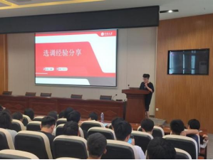 郑轲月、罗书红、蓝毅、韩葆四位党员分别就保研、考研、选调、就业这几方面展开经验分享。郑轲月同学结合自己的保研经历,向大家介绍了有关“面上保研”“行政保研”“支教保研”的相关流程,并向大家分享了许多实用的经验;罗书红同学分享了在备考过程中使用的参考资料以及备考经验心得;蓝毅同学则向大家详细介绍了有关选调生的各类信息,并结合自己的实际经历帮助同学们理解各项政策要求;韩葆同学根据自己求职的经验,指导学弟学妹们如何筛选就业信息、如何进行笔试面试准备等工作。