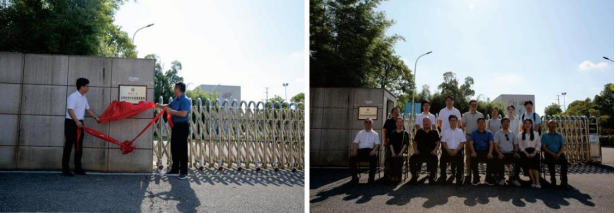 校团委副书记李飞和梁昕晔董事长共同进行大学生校外实践教育基地揭牌,校企双方代表合影留念。