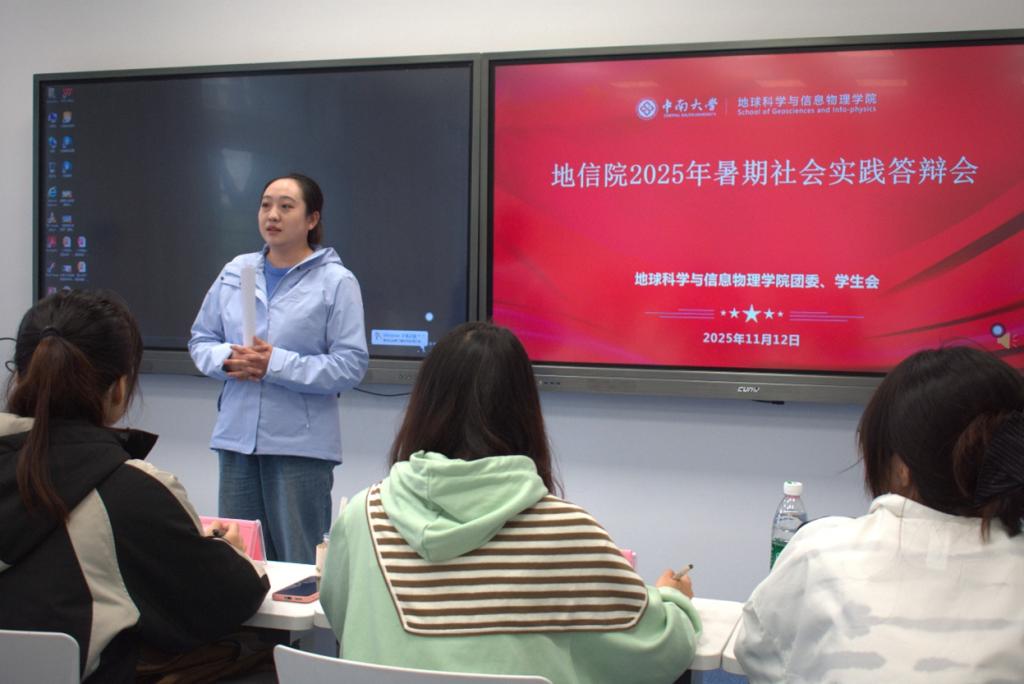 11月12日下午14:00,地信院2025年暑期社会实践总结答辩会于新校区A座218教室顺利召开。院团委书记刘琦老师、地信院第十四、十五届学生会主席团成员、校团委社会实践部新媒体中心副主任钱敏任评委。本次答辩会由涂梦涓同学主持,地信院6支社会实践团队参与答辩。