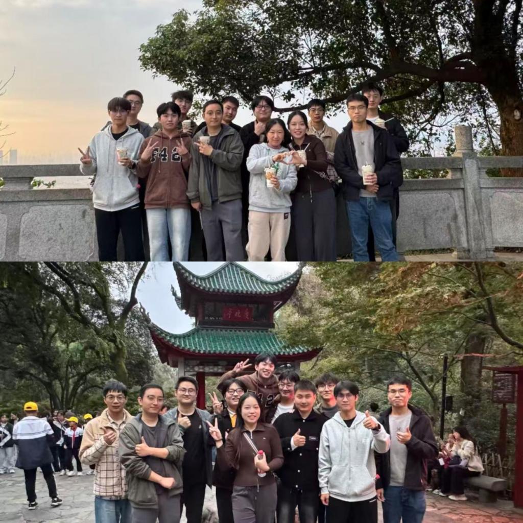 11月3日至9日,“师者引路,携手攀登”师生登山行活动率先开展。各年级、各实验室团队在班导师、研究生导师的带领下,以班级或课题组为单位集体攀登岳麓山。师生们边登山边交流,将课堂延伸至青山绿水之间,在轻松自然的氛围中探讨学术问题、分享科研心得,实现了思想启迪与体质锻炼的双重收获。