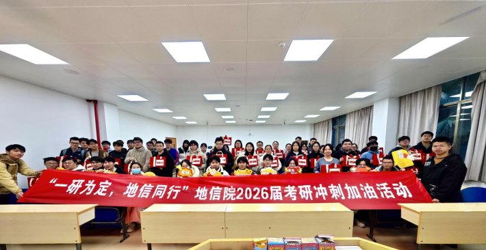 活动最后,全体参会人员合影留念,本次考研冲刺加油活动圆满落幕。此次活动旨在为考研学子提供全方位的备考支持,缓解冲刺阶段的压力,让学子们带着温暖与信心迎战考试。愿地信院2026届考研学子全力以赴,成功上岸!