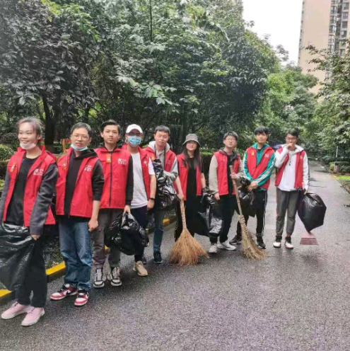 上午九点,同学们到达服务地点,在工作人员的讲解下了解到志愿服务的流程,并通过“志愿汇”APP成功在线注册成为一名志愿者。之后在工作人员的带领下,同学们穿上志愿服务的工作服,拿上清洁工具,开始了清洁打扫工作。虽然此时下起了绵绵细雨,但仍然不影响同学们志愿服务的热情。大家顶着雨,认真地清理着路面上堆积的垃圾,并仔细地捡出路沿边花坛里的烟头和零食袋等杂物。同学们的努力使得社区更加干净美丽,也对保护地球的环境卫生起到了积极的推进作用。
