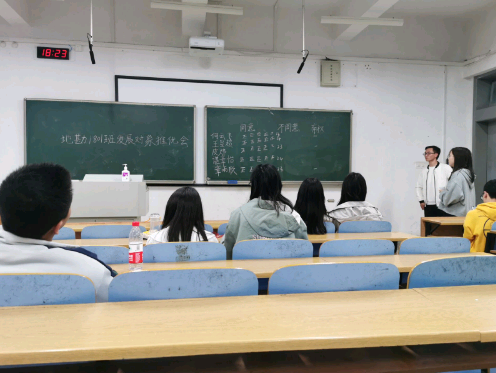 3月26日晚18:00,地勘1801班在B座309进行了发展对象推优会。此次推优会由地勘1801带班党员李永顺同学主持。