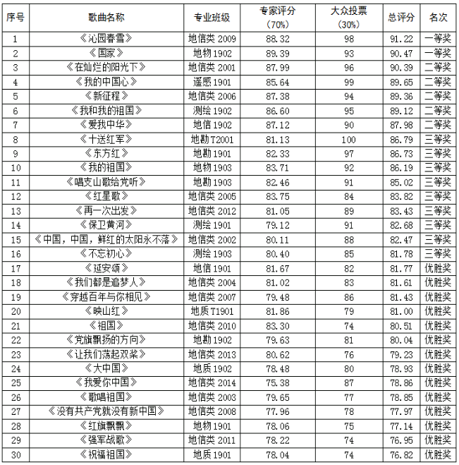 为庆祝中国共产党成立100周年,引导广大地信学子厚植爱国情怀,在丰富校园文化生活的同时,营造良好的校园文化艺术氛围,学院于2021年6月,举办了“全心向党,红歌嘹亮”网络视听短视频大赛。经过各参赛班级的认真准备、作品上报、大众投票、专家评选,最终评选出2个一等奖班级、5个二等奖班级、9个三等奖班级、14个优胜奖班级,现将获奖名单公示如下: